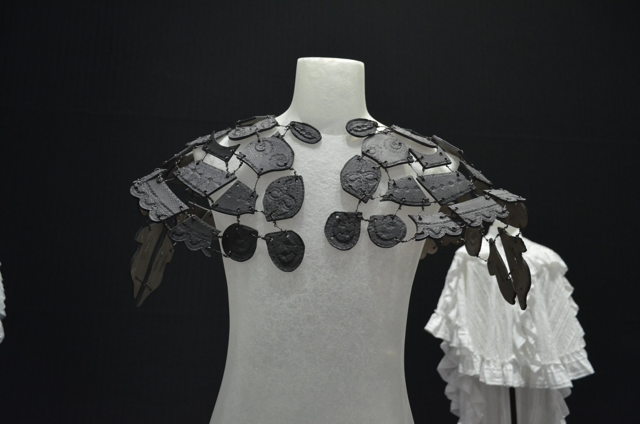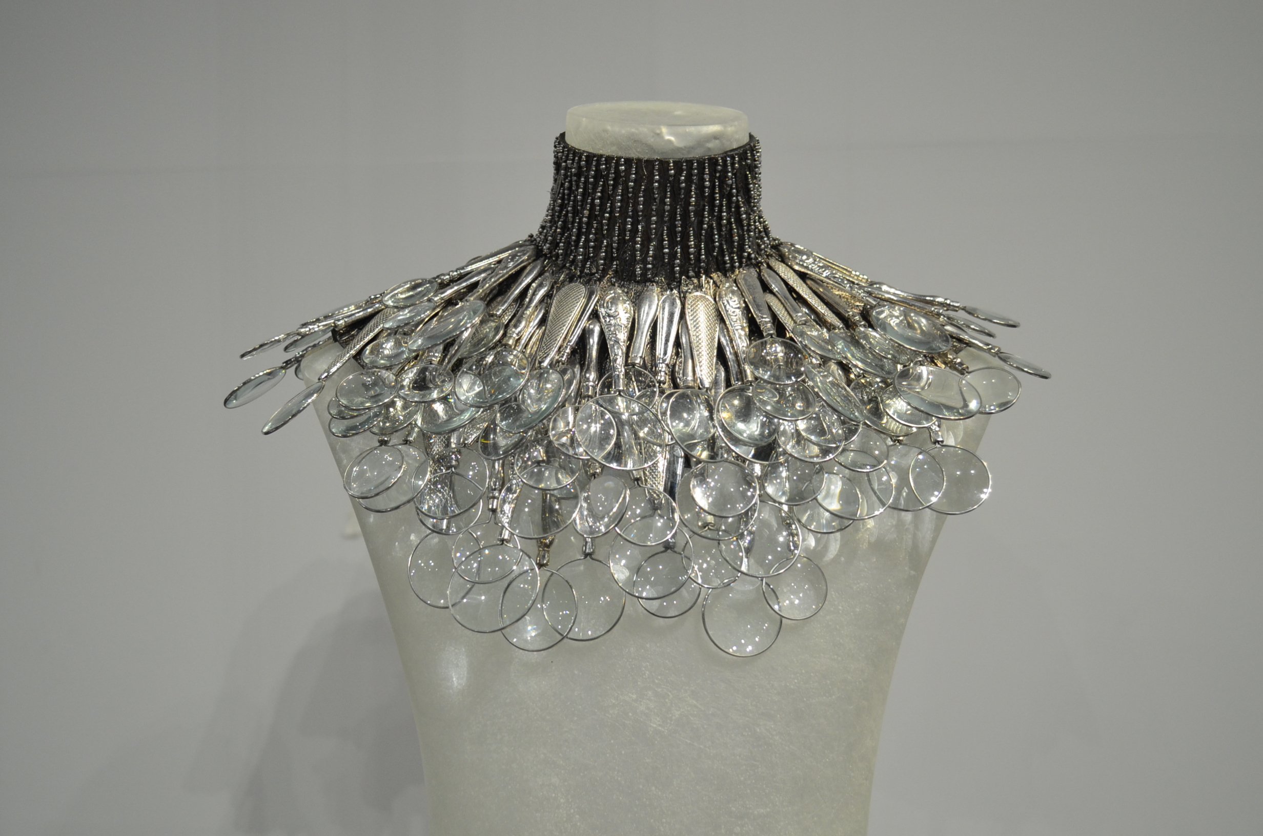 Each cape is handmade, so we are talking about couture capes. Some of the materials used were pretty unusual- for clothes at least!. Materials like ceramics, steel, wood, shells, pearls and even magnifier glasses. Of course there were also capes made out of fabrics and sequins, wool, velvet, silk, feathers, etc…