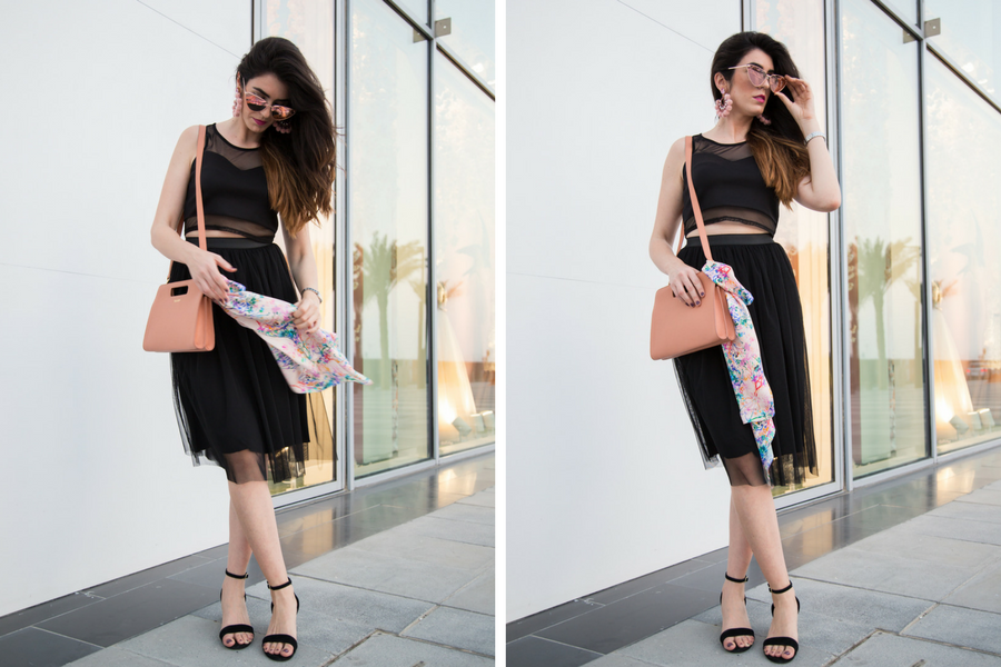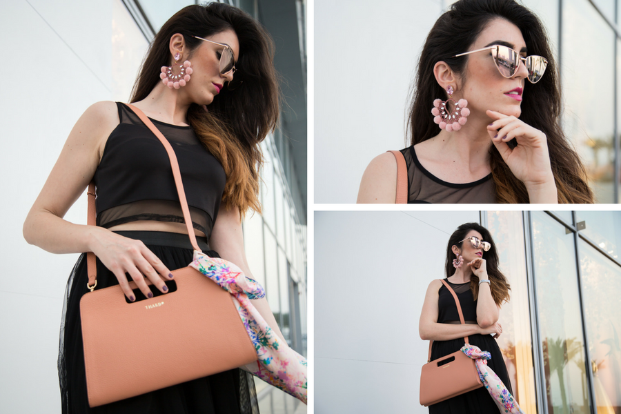 Marta selected these gorgeous earrings from Bija, the cool sunglasses from Fashion Pirate shop, the bag from Emirati brand Tharb and the scarf from Charlotte Hudders.