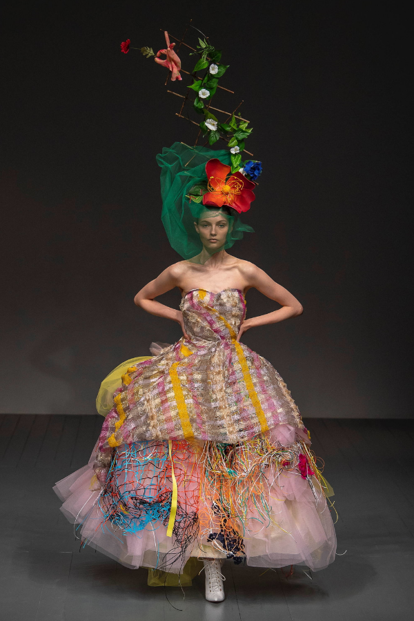 London Fashion Week was a mixture of new beginnings and anniversaries. Last season, Richard Quinn who famously had Queen Elizabeth II in his front row, this season did quite the opposite. Actually, he invited children from schools he had gone to and have them in the front row. He is concerned about how much the children are geared by their families towards science or money-making careers, leaving on the side the expression of Art and Creativity.
