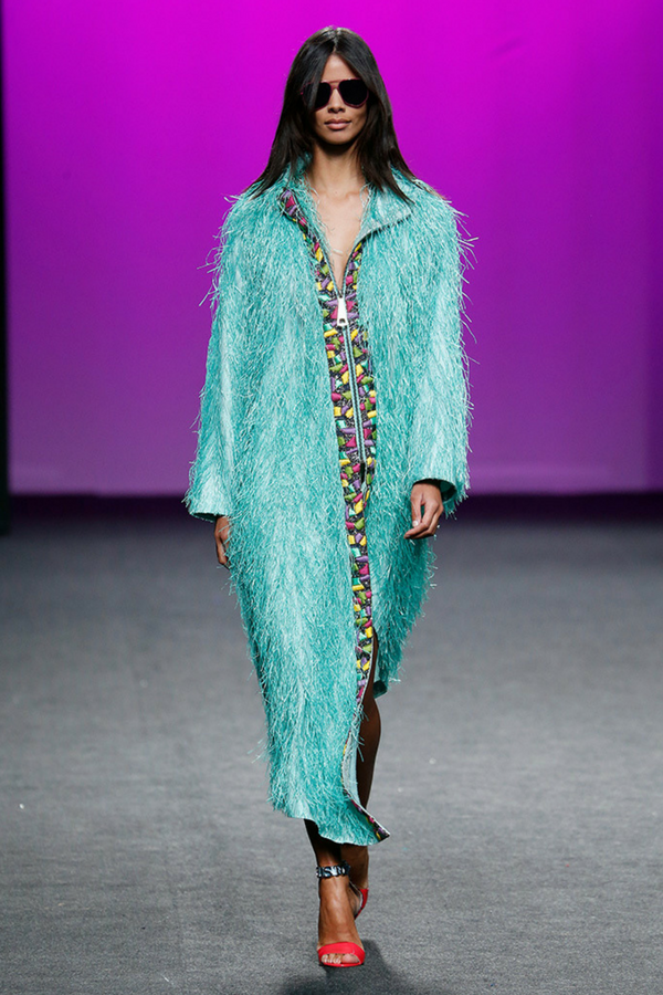 Custo Barcelona after showing in the New York Fashion Week he continues his innovation flow in fashion. Technology, hand artisan craftsmanship, variety in his silhouettes in a collection full of surprises, colors, and forms, ready to go for the avant-garde worldwide women. Mixtures of prints, silvery designs, fringes, and summer transparent raincoats in the catwalk from this master of creativity, marketing, and success!
