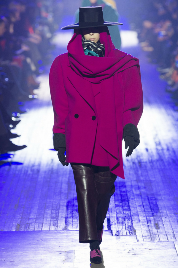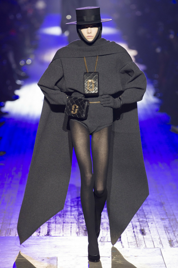 Marc Jacobs collection is dramatic with imposing silhouettes. The collection is made of long cashmere coats in different colors with matching hijab-like scarves or balaclavas masks.