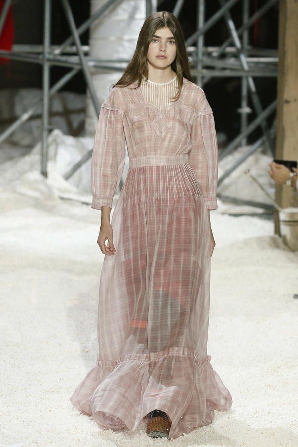 For his collection titled “Landscapes,” he gave us a kind of an apocalyptic feel with airy prairie dresses and farmer plaids.